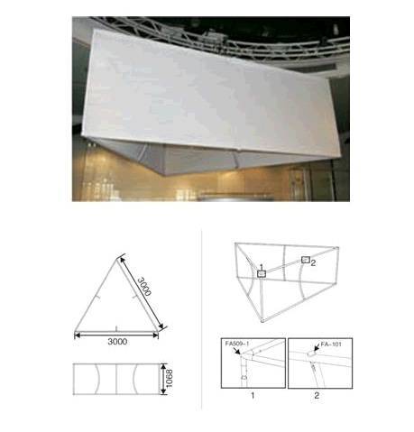 Sistema triangular cubierta de tela con base sus marcos son hechos a base de tubos de aluminio anodizado.