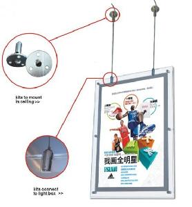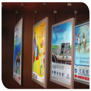 Caja de aluminio anodizado mate delgado de 1.8cm con luz ultra ligera con marco; para colgarse a 2 vistas. Duración de la lámpara hasta 30;000 horas de vida.