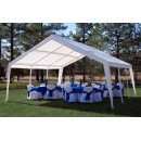 Carpa 6m x 6 m decorativa, dos aguas, con cubre postes o patas con tela nylon color blanca, postes 2" galvanizados pintados de blanco y lona poliester o lona 18 onzas
