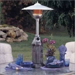 Calentador Electrico Exterior, Medida 2.23 mRadio de calor de 82 cmSteel construction with antique brown powder-coated finish Built-in 15-in. round table Push button electric ignition 41,000 BTU CSA approved Includes regulator, hose, and heater cover LP