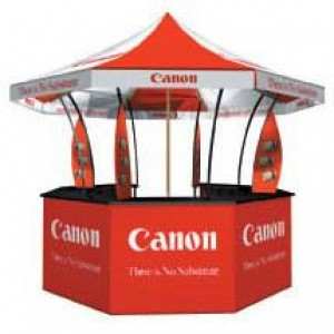 Display Kiosco, para exposiciones, eventos de promocion y venta de productos y servicios, 3 m de diametro, se almacena en 2 maletas, facil de instalar, una sola persona puede con