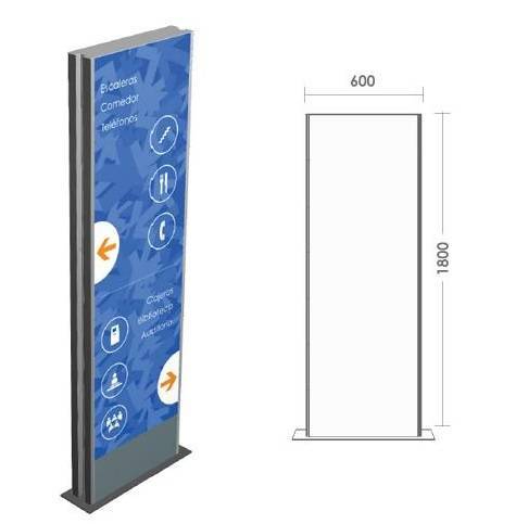Monolito con perfiles HF30 a los extremos. Se ofrece desde 300mm hasta 1200mm de ancho y su altura puede variar hasta los 3 metros.