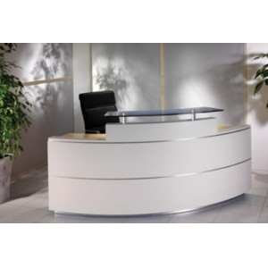 Mueble de recepción modelo arco, fabricado en maderalargo 2.10 m altura total 90 cmLaminado en colors a elecciónRepisa cristal 10 mm