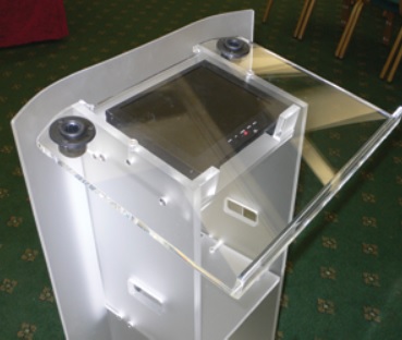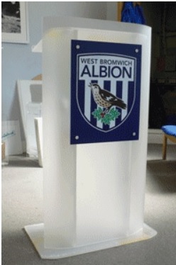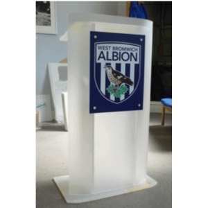 Podium Acrilico modelo AR55, para grandes eventos, fabricado en acrilico 10 y 12mm opalino y frost, con un diseño muy moderno y de gran impacto visual,