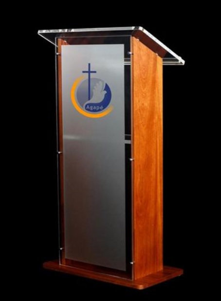 Podium fabricado en Acrilico Cristal 12 mm y madera BanaK, color al gusto del cliente