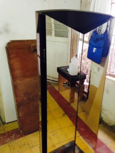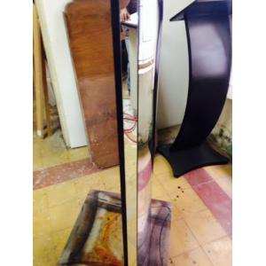 Podium curvo plata portatil, fabricado en acrilico 12 mm, acrilico espejo 3 mm, madera pino