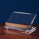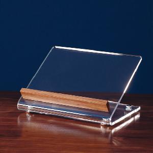 Podium Escritorio fabricado en acrilico de 12 mm, termoformado, con barra madera, medidas 50 cm de ancho, altura 27 cm , fondo 45 cm