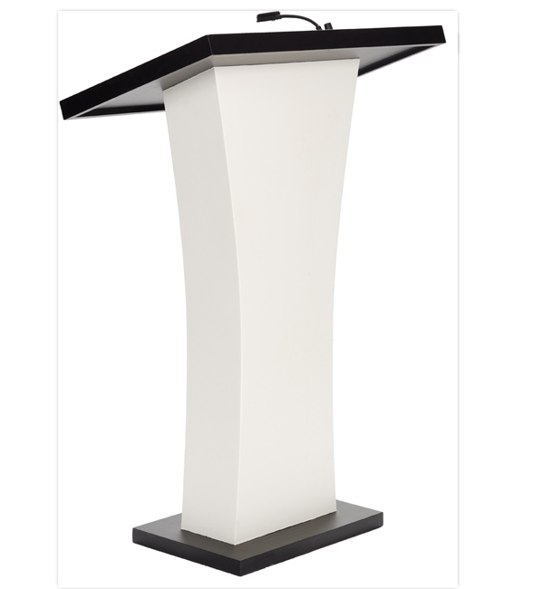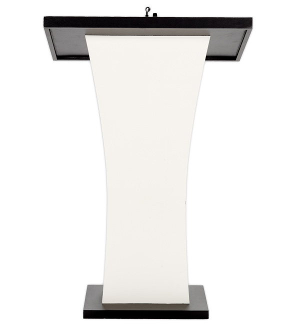Podium Madera enchapada 15 mm, acabado color blanco cuerpo del podium y negra la paleta de documentos