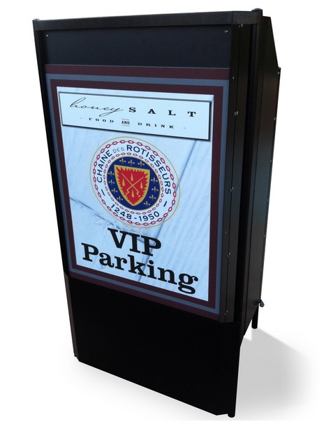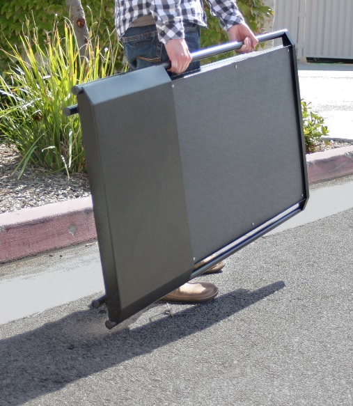 se convierte en maleta, tiene un señalizador para que coloque su imagen intercambiable al frente en un área de 55 x 83cm