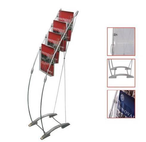 CLAVE: 0903-190 Portafolletero plegable de aluminio y ba se en forma de arco; y con sistema de cable tensado; con capacidad para la colocación de 4 áreas de folletero; fácil y rápido armado e incluye maleta transportadora de polyester. *Precio solo estructura