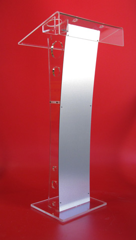 Podium de orador fabricado en acrilico cristal y aluminio de alta calidad.