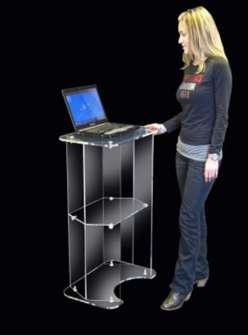 Podium - Torre para Laptop, fabricada en Acrilico cristal de 12 mm, reforzada con tornillos para reforzar la paleta  de documentos, medida 1.15 m o 1.05 m (a elección del cliente), frente 60 cm, fondo 45 cm