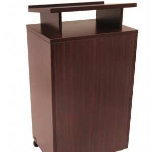 Podium de Madera fabricado en madera laminada de 15 mm con acabados en más de 20 matices,  con paleta de doctos elevada, y con ruedas para facil transportación Medida 1.20 m de