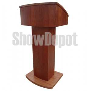Podium Madera Caoba PeruanaDiseño Vanguardista Medida 1.17 m x 65 cm ancho arriba, 50 cm profundidadPor $1800 Pesos adicionales incluye micrófono, preparación y soportePor 900 Pesos adicionales la lampara ya instalada Total