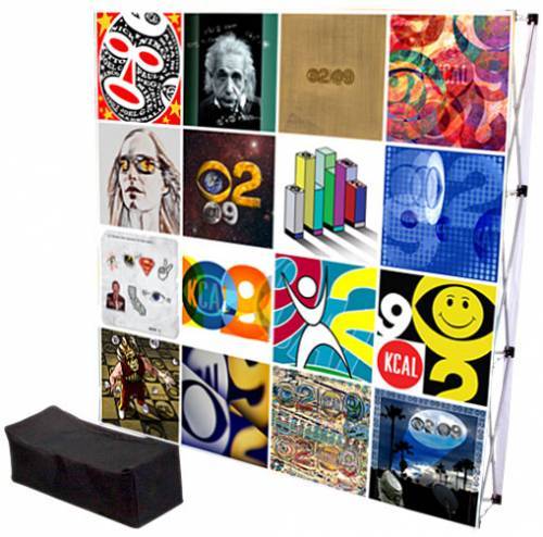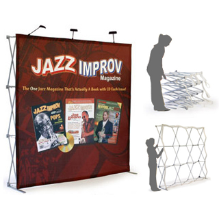 Estructura de aluminio plegable de fácil y rápido armado;el cual despliega el gráfico en una sola pieza. La impresión de tela se adhiere a la estructura con velcro. Incluye maleta transportadora de polyester.