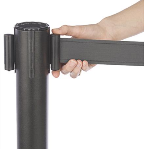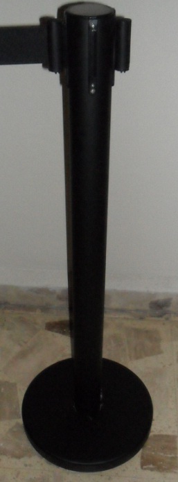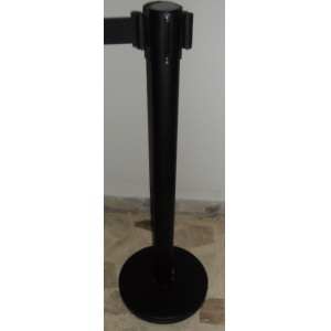 Poste para control de filas color negro de aluminio 91 cm con cinta negra 2 m de largo x 10 cm de ancho de poliester