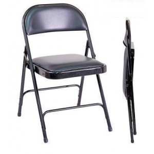 Silla plegable acojinada, forrada en plasti piel color negro,práctica y funcional por que no ocupa mucho espacioya que la puede guardar y desplegar cada vez que lo necesite,con antiderrapantes en