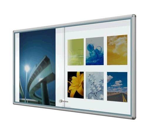 Tablero informativo realizado con pefiles de aluminio en diferentes acabados; cuenta con un sistema para desplegar y cambiar la información fácil y rapidamente.