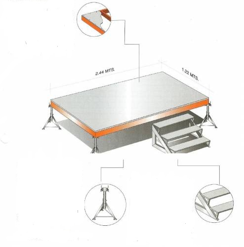 Escalera se cotiza separadamente, esta fabricada en Polin de 3" y madera , disponible para entarimados de .60 cm, .70. cm,