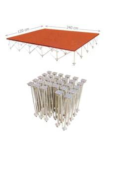 Estructura de aluminio plegable de acero de rapido despliegue; configurables para formar pasarelas y escenografías.
