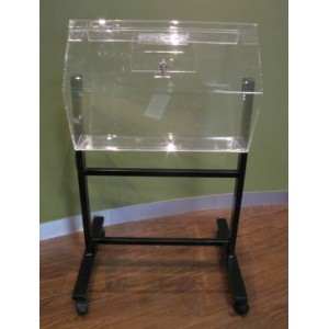 Tombola de acrílico medida 30 x 60 m Capacidad 3000 boletos de 1"x2"con pedestal de finas maderas pintadas al gusto del clienteCompuerta con candado y ranura de 15 cm para introducir