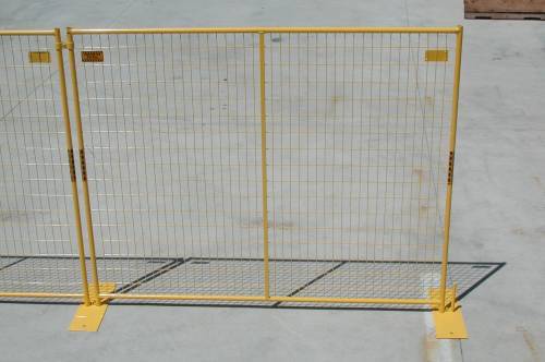 Vallas de acero 1.80 m de altura, 2.20 m de ancho, bases de acero con candado, pintadas color amarillo, para delimitar areas de trabajo en constructoras, etc